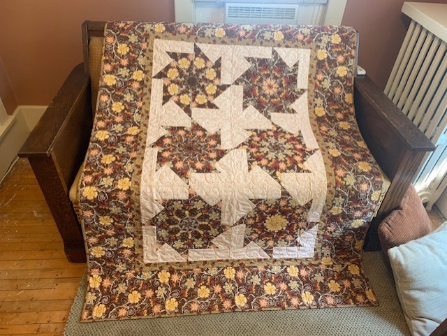 An opportunity to own a true classic. Fall colors abound in this quilt made by locally renowned quilter Missy Molino. She was the founder of Quilt Odyssey, an annual quilt show in Hershey and a founding member of UUCV.